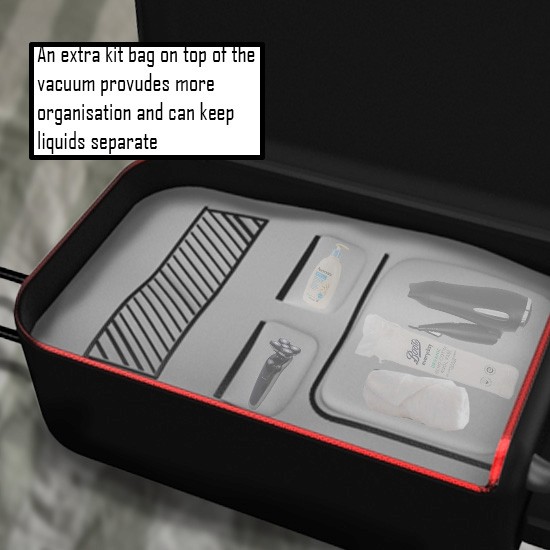 The vacuum pack is attached to the suitcase allowing 120L of packing space (32 - 45kg) and when the air is extracted the vacuum pack will reduce 75 - 80% fitting into a 87L suitcase (15 - 23kg sized)