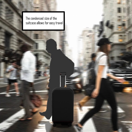I must design a suitcase which can compact items into a smaller space while making it easy to travel through different environments