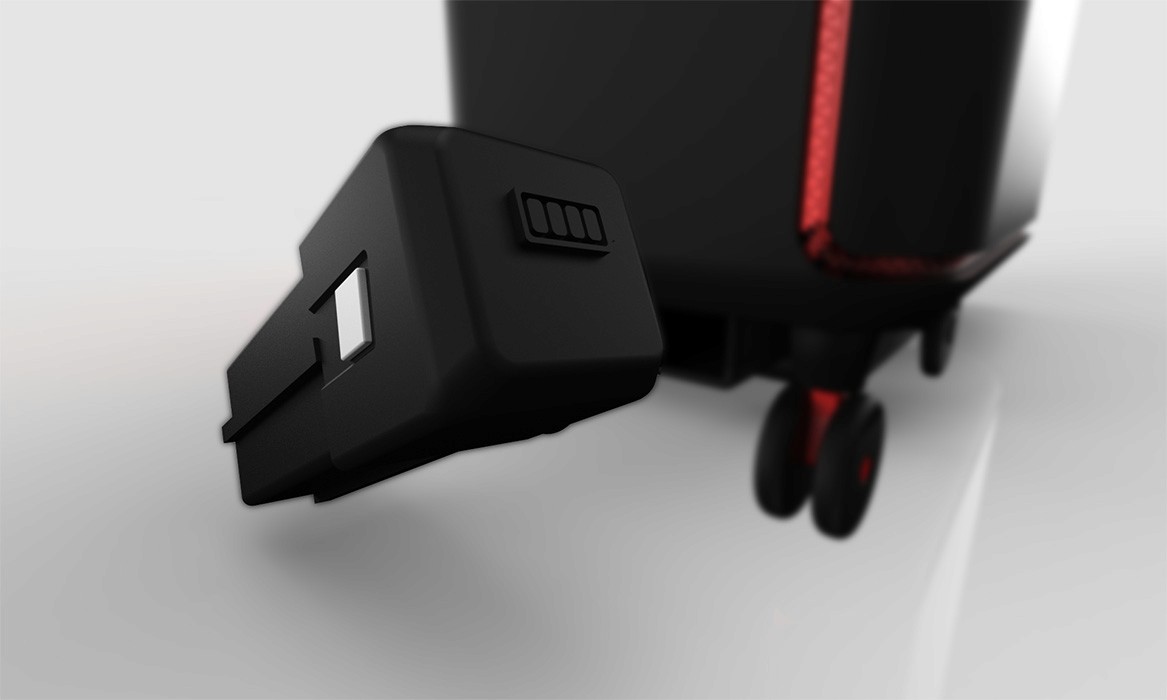 When this button is pressed the battery is ejected from underneath the suitcase in front of the motor