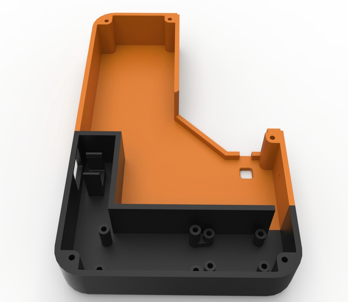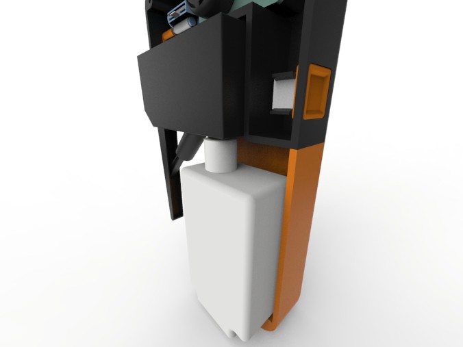 The spray bottle and pcb are constrained in two different parts to limit movement inside with the spray bottle and further improves the longevity of the product