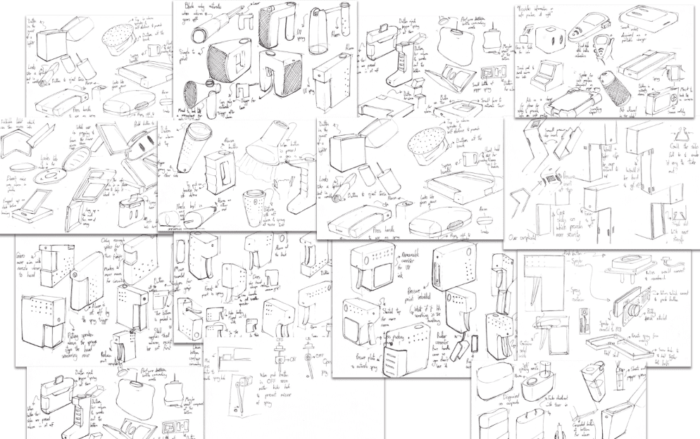 To find viable solutions using the collected research I began to ideate on different methods I could do this. Mainly revolving around hand held items which could blend into society quietly as not to be disruptive